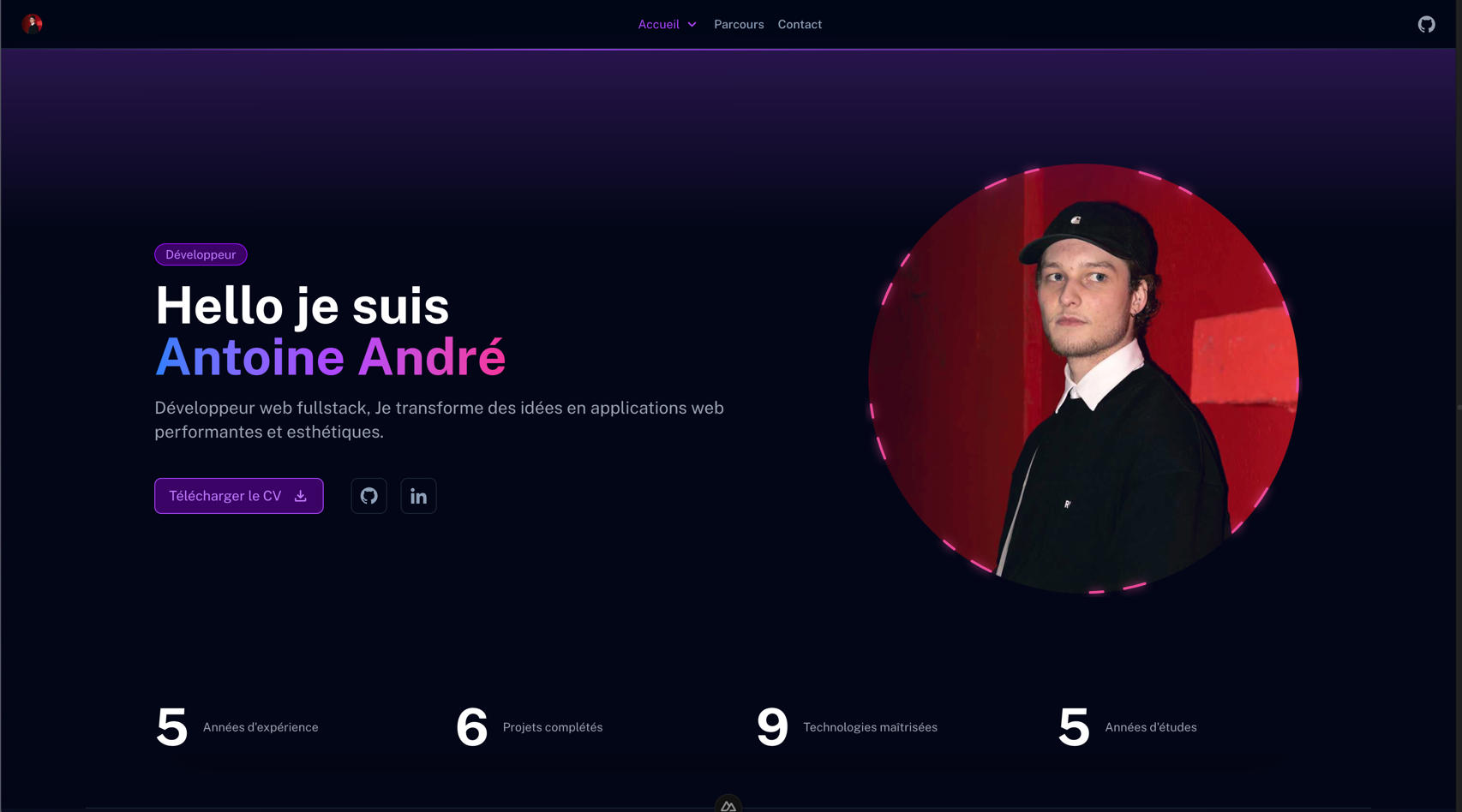 Mon portfolio est une vitrine de mon savoir-faire en développement web fullstack. Il met en avant mes compétences techniques, mes projets réalisés et mon parcours professionnel.
